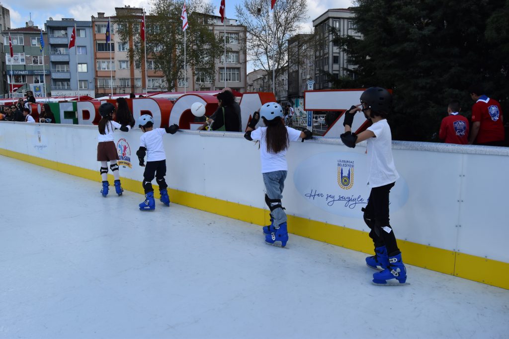 Lüleburgaz Belediyesi tarafından kurulan sentetik buz pisti de çocukların en çok tercih ettiği alanlardan biri oldu. Gün boyunca pistte kayan çocuklar, unutulmaz anlar yaşadı. İlk kez buz pistine çıkan birçok çocuk heyecanını gizleyemezken, aileler de bu anları cep telefonlarıyla kaydetti.