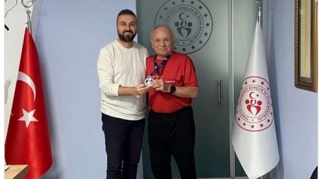 77 yaşındaki sporcuyu tebrik eden Müdür Öztürk;