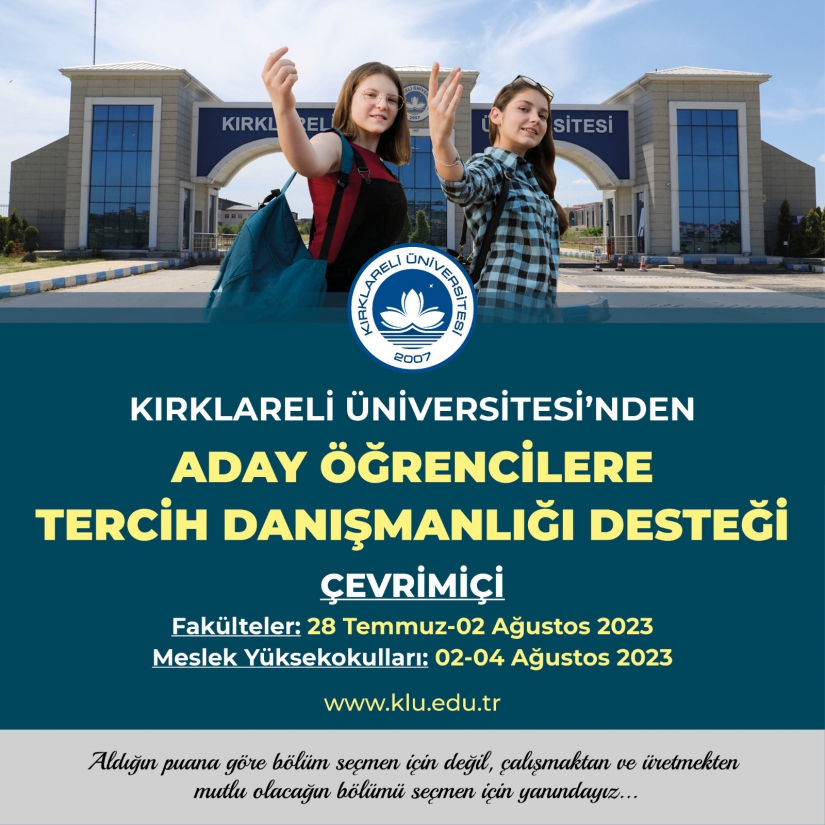 Kırklareli Üniversitesi olarak tüm aday öğrencilerin bilinçli ve gerçekçi bir tercih yapmaları için her türlü desteğe hazırız!” denildi.