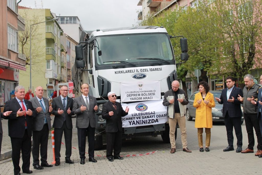 Kırklareli Vali Yardımcısı Elif Canan Tuncer, Lüleburgaz Kaymakamı Salih Yüce, İlçe Emniyet Müdürü Osman Ünal, Lüleburgaz İlçe Müftüsü Sabri Demir, Lüleburgaz İlçe Sağlık Müdürü Dr.A.Önder Porsuk, İlçe Tarım Ve Orman Müdürü Abuzer Ssağdıç, Lüleburgaz Kızılay Şube Müdürü Mustafa Gamsız Yönetim Kurulu Başkanımız İlhami Cebelli, Meclis Başkanımız Fahri Cömert, Yönetim Kurulu Başkan Yardımcımız Şevket Muntaş, Yönetim Kurulu Üyelerimiz Mehmet Gül, Ahmet Yıldıray Sayar, Ahmet Dervişoğlu; Deprem Yardım Komisyonu Üyelerimiz S.Doğancan Çamlıca, Adem Murat Çarıkçı, Oktay Mutlu tarafından ihtiyaç sahibi vatandaşlarımıza ulaştırılmak üzere hazırlanan erzak paketlerimizi dualarla uğurlandı.