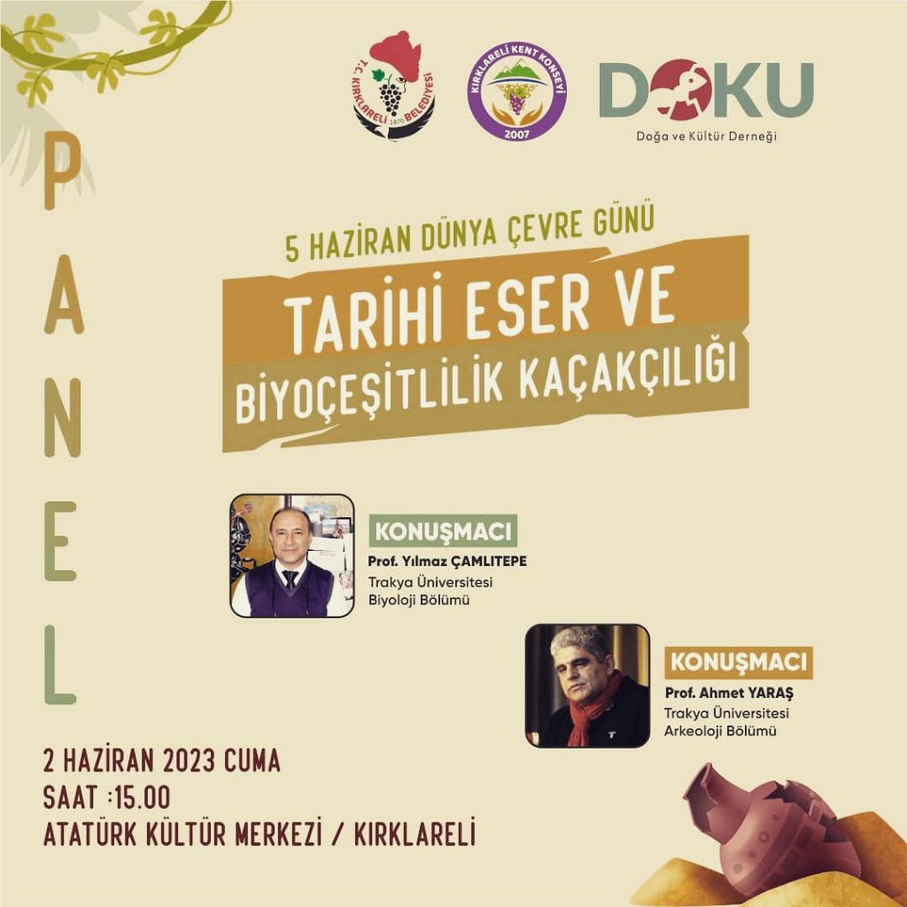 5 Haziran Dünya Çevre Günü nedeniyle 2 Haziran Cuma günü saat 15.00’da Kırklareli Atatürk Kültür Merkezi’nde Trakya Üniversitesi Biyoloji Bölümü Prof. Yılmaz Çamlıtepe ve Trakya Üniversitesi Arkeoloji Bölümü Prof. Ahmet Yaraş’ın konuşmacı olacağı panel düzenlenecek.