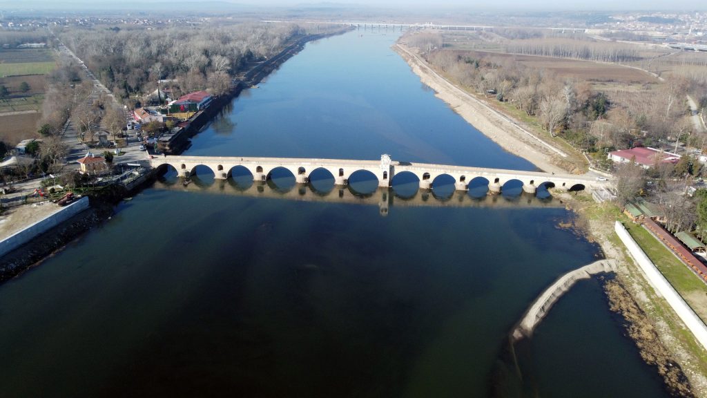 EDIRNE’DE, OSMANLI PADISAHI 2’NCI MAHMUT DONEMINDE YAPILAN, KENTIN TUNCA KOPRUSU ILE BIRLIKTE ‘GERDANLIGI’ OLARAK ANILAN MERIC KOPRUSU’NUN, BUGUNE KADAR BILINMEYEN MIMARINA TARIHI KAYNAKLARDAN ILK KEZ ULASILDI. (FOTO: UMUT ISIK / EDIRNE, DHA)