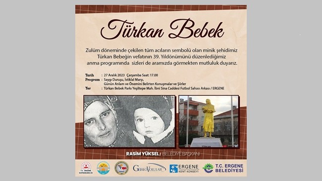Ergene Belediyesi Türkan Bebek için Vefatının 39. Yılında Yeşiltepe Mahallesi Türkan Bebek parkında anma programı düzenleneceğini açıkladı.