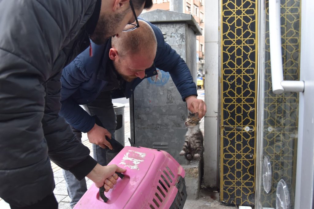 Durumu fark eden bir vatandaş, kedinin yağmurdan dolayı tamamen ıslandığını ve kuyruğunun yaralanmış olduğunu görünce hemen harekete geçti.