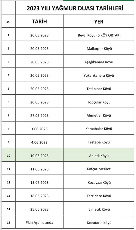 Kofçaz İlçe Müftülüğü yöremizde büyük öneme sahip şükür ve yağmur duası yapacak yerlerin takviminde tarihi netleşen yeni köyleri duyurdu. Mayıs ayında yağmur duası yapan köylerden sonra Kofçaz’ın diğer köyleri Haziran ayında yağmur duası yapacak. (Haber Merkezi)